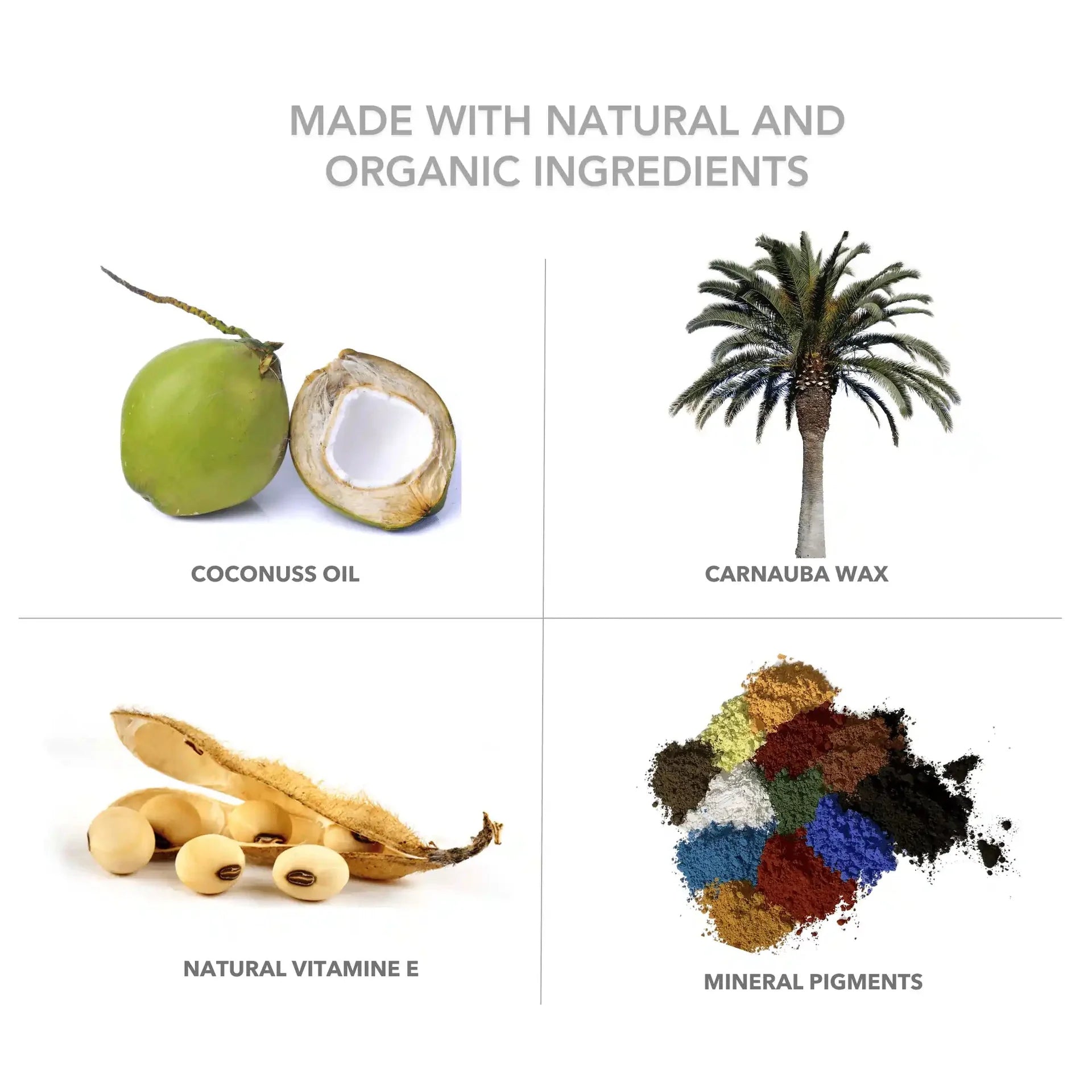 Octyldodecyl Stearoyl Stearate, Cocos Nucifera Oil*, C10-18 Triglycerides, Copernicia Cerifera Cera*, Tribehenin, Silica, Polyglyceryl-3 Diisostearate, Oryzanol, Tocopherol, Glyceryl Caprylate, CI 77499 (Iron Oxides), CI 77491 (Iron Oxides), CI 77492 (Iron Oxides)
