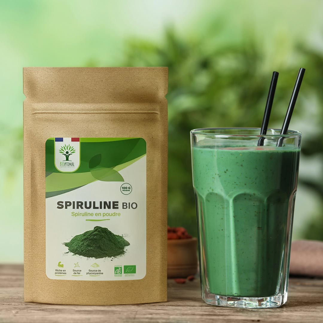 Exempel: spirulinapulver eller tabletter, gröna superfood-blandningar.