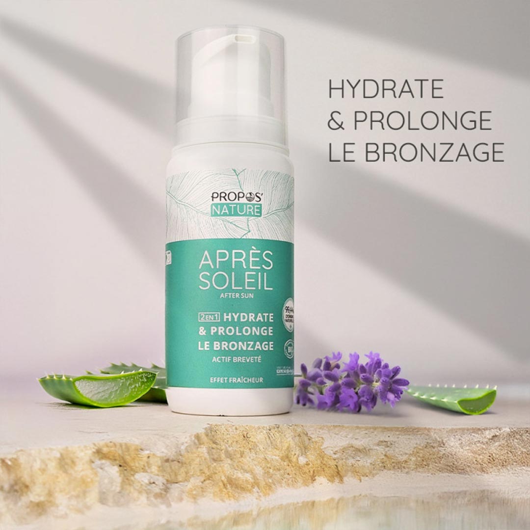 Denna uppfriskande gel erbjuder en kraftfull 2-i-1-effekt: den lugnar och regenererar huden samtidigt som den hjälper till att förlänga din solbränna naturligt. En mild blandning av lavendel och malvaextrakt lugnar känslor av värme och spänning, medan Aloe vera, känd för sina återfuktande och reparerande egenskaper, stödjer hudens återhämtning och komfort.